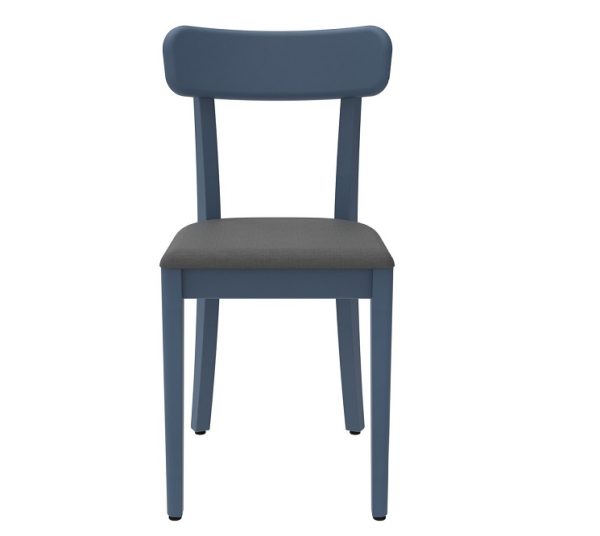 Der Stuhl verfügt über eine dampfgebogene Bugholz-Zarge mit Massivholz-Eckverstärkung sowie eine ergonomische Sperrholz-Sitzplatte. Die Polsterung besteht aus hochwertigem Polyetherschaum und ist optional mit abziehbarem Bezug erhältlich.