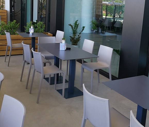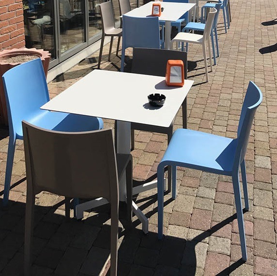 Der vielseitige Kantinenstuhl EN-53 ist auch für den Außenbereich geeignet.