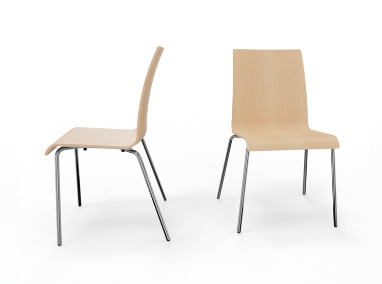 Stuhl KSC301 mit Holzsitzschale ergonomisch geformt. Stühle für die Kantine mit Stahlrohrgestell als Vierfuß.